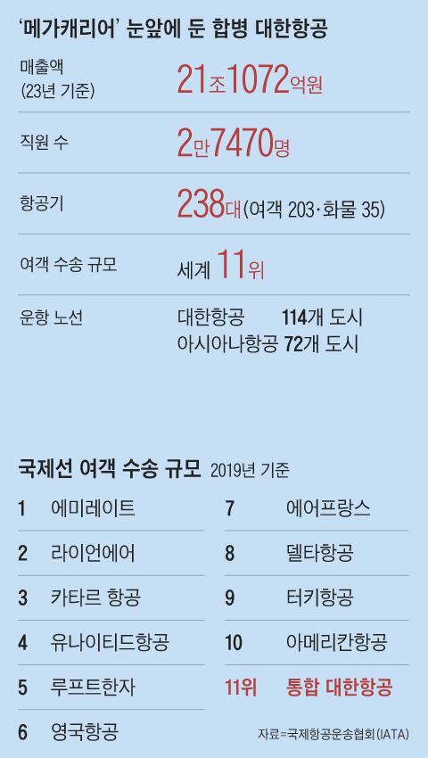 국제항공운송협회(IATA)가 발간한 최신 세계 항공 운송 통계(2019년 기준)에 따르면 대한항공과 아시아나항공을 단순 합산할 경우 국제선 여객 수송 실적에서 세계 11위에 이름을 올리게 된다. 국제선 여객 수송 실적 톱10에 있는 항공사의 대부분은 인수합병을 통해 몸집을 키운 메가 캐리어다. 항공업계 관계자는 “항공사는 대규모 투자를 기반으로 운영되는 규모의 경제 산업”이라며 “글로벌 항공 시장은 메가 캐리어를 중심으로 돌아가고 있다”고 말했다. 특히 2000년대 이후 미국과 유럽을 중심으로 항공사 간의 합종연횡이 활발해졌다. 미국 델타항공은 2008년 노스웨스트항공을 인수해 세계 최대 항공사로 성장했다. 독일 루프트한자도 6개 항공사 간 인수합병을 통해 몸집을 키웠다.