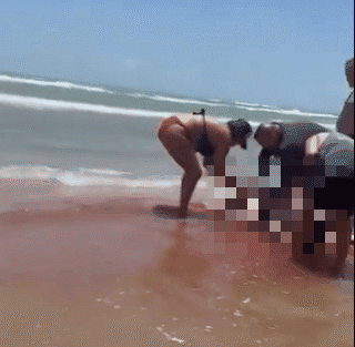공개된 영상을 보면, 상어에게 다리를 물린 A씨는 사람들의 도움을 받으며 모래 위에 누워 지혈을 받고 있었다. 또한 주변인들은 여성의 다리에 지혈대를 감아줬다. 주변 바닷물은 빨간색으로 물들어 있었고, 해안선 근처에는 상어 지느러미가 왔다 갔다 하는 모습도 포착됐다.