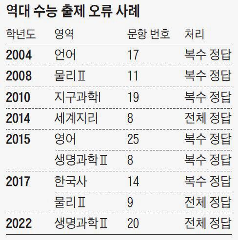 교육계에서는 이번까지 총 7차례 수능에서 9개 문항의 출제 오류가 발생한 가운데 5개 문항이 과학탐구영역인 점을 들어 대책 마련을 촉구하고 있다. 특히 과학탐구영역은 출제 오류 논란이 생기면 평가원이 다양한 전문가들에게 논의를 개방하는 공론화가 필요하다는 지적이 나온다. 이날 1심 재판부도 “만일 이 사건 문제의 정답을 그대로 유지한다면, 수험생들은 앞으로 수능 과학탐구영역에서 과학 원리에 어긋나는 오류를 발견하더라도 그러한 오류가 출제자의 실수인지 의도된 것인지 불필요한 고민을 할 수밖에 없다”며 “또한 수능을 준비하면서 사고력과 창의성을 발휘하여 문제를 해결하는 능력을 기르는 것에 초점을 두지 않고 출제자가 의도한 특정 풀이 방법을 찾는 것에만 초점을 두게 될 우려도 있다”고 밝혔다. 임성호 종로학원 대표는 “출제 오류 논란이 일었을 때 평가원이 일부 학회에만 자문하는 폐쇄적인 대응 체계를 고집하며 안이하게 대처해 혼란을 키웠다”며 “이번 출제 오류가 수능 체계의 근본적 개선을 요구하는 목소리로 이어질 가능성이 있다”고 했다.