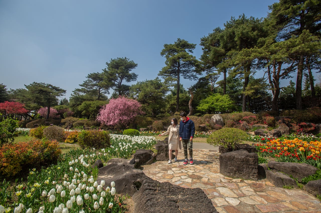 2005년 문을 연 벽초지수목원은 면적 12만㎡, 6개 주제 27개의 동·서양 정원이 조성돼 있다. 입구에 들어서자마자 꽃들의 향연이 펼쳐진다. 형형색색의 봄맞이 튤립축제가 다음 달 5일까지 열린다. 요즘 소셜미디어에 자주 등장하는 서양정원 입구에는 ‘말리성의 문’이 있다. 베르사유 궁전 서편에 있던 말리성의 문을 본뜬 성문으로, 유럽 느낌 물씬 나는 포토존이 돼준다. 말리성의 문을 지나 펼쳐지는 넓은 정원은 말리성의가든, 아폴론가든, 체스가든, 오아시스 가든으로 이어진다. 그리스 신화에서 튀어나온 듯한 조각상들이 방문객을 맞이한다.