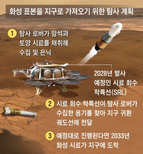 지금까지 화성 탐사는 일회성으로 끝나는 경우가 많았는데요. 퍼서비어런스는 화성에서 앞으로 진행할 탐사 계획을 돕습니다. 퍼서비어런스에는 화성의 흙이나 자갈, 대기 중 먼지 같은 것을 담을 수 있는 시료 용기 38개가 있습니다. 이 중 절반쯤 되는 18개는 지표에 있는 먼지나 자갈·암석을 담았습니다. 나머지는 화성 대기를 채집하고 있는데요. NASA는 퍼서비어런스를 계획하면서 이 시료 용기를 지구로 갖고 돌아오기 위해 2027년, 2028년 두 차례의 탐사선 발사 계획을 함께 세웠습니다. 2033년 시료는 지구에 도착합니다.