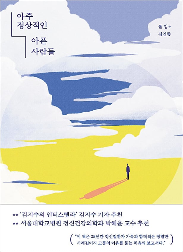 미국에서 활동하는 폴 김 목사와 언론인 김인종의 ‘아주 정상적인 아픈 사람들’(마름모)은 종교와 과학 사이에 서 있는 책이다. 신앙 활동에 대한 얘기가 많이 나오지만 신앙책은 아니다. 그렇다고 개인의 삶에 대한 에세이나 명상록도 아니다. 책의 정체와 의도를 이해하는 데 시간이 좀 걸렸다. 아마 우리나라가 자살 1위 국가가 아니라면 그리고 나의 주변에도 자살을 입에 올리는 수많은 우울증을 앓는 사람이 없다면, 이 책을 끝까지 읽지는 않았을 것이다. 40대 이후로 우울증과 살았던, 얼마 전에 돌아가신 아버지 그리고 우울증에 이어 치매가 점점 심해지시는 어머니 생각이 났다. 그리고 성공한 아버지의 강압 속에서 결국을 자살을 선택하거나 불행한 삶을 살게 된 자녀들의 얘기들을 읽으면서 나도 우리 집 어린이들의 미래를 생각하게 되었다.