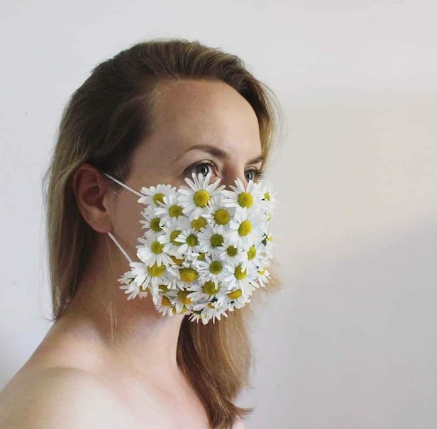 미국 뉴욕 메트로폴리탄 미술관이 지난 5월 말부터 소셜 미디어에서 펼치고 있는 행사 '#메트 마스크 챌린지'에 전 세계인들이 올린 수제 마스크 중 하나. 영국 설치미술가 에스텔 울리가 야생 캐모마일 꽃으로 만들었다. /인스타그램 '#메트 마스크 챌린지' 캡처