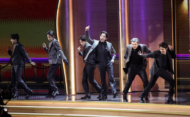 그럼에도 이날 ‘007 시리즈’를 패러디한 BTS의 시상식 무대는 단연 돋보였다. 특히 멤버 뷔가 이날 신인상을 수상한 올리비아 로드리고의 귓속말을 하는 연출을 하고, 정국이 하늘에서 이동식 장치를 타고 내려올 때 관중석에서는 큰 호응이 쏟아졌다. 공연이 끝난 뒤엔 내로라 하는 미국 음악계 관계자와 스타들의 기립박수가 쏟아졌다.