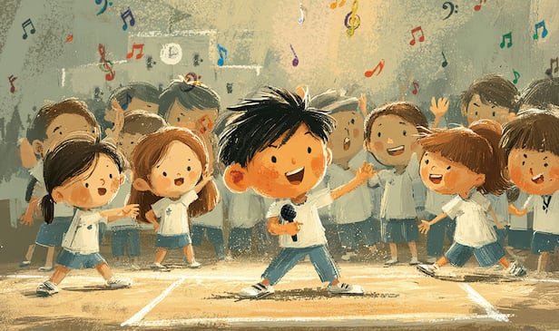 하준이가 고개를 숙이며 말했다. 다른 아이들도 가망 없는 상을 어떻게 받냐며 고개를 저었다. 받을 수 있으면 네가 응원해 보라며 말하는 아이도 있었다. 나는 괜히 의견을 낸 것 같아 주눅이 들었다. 그때 승민이가 발을 굴러 비트를 만들었다. 승민이가 박치여서 그런지 비트의 박자가 이리저리 흔들렸다. 승민이는 나를 바라보며 고개를 끄덕였다. 곧이어 아이들이 리듬에 맞춰 손뼉을 쳐주었다. 아직 이렇게 많은 사람 앞에서 랩 해본 적 없는데, 심장이 떨렸다.