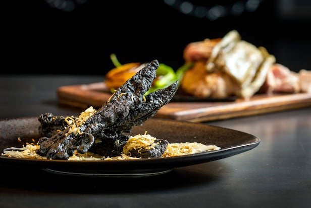 바다와 육지의 맛을 함께 낸다는 이 집의 콘셉트에 걸맞게 피시 앤드 칩스도 메뉴에 올랐다. 흰살 생선 대신 장어를, 감자 대신 가지를 사용한 피시 앤드 칩스를 낸다. 오징어 먹물을 써서 검정빛으로 튀겨낸 장어와 가지에 유자 타르타르 소스를 함께 냈다.