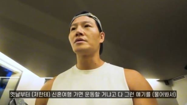 김종국은 신혼여행 첫날에 이어 다음 날에도 헬스장을 방문했다. 그는 “옛날부터 나한테 신혼여행 가면 운동할 거냐고 물어보더라. 나한테는 너무 당연한 이야기”라며 “호텔은 다 운동하는 곳이 있지 않나. ‘신혼여행 가서 운동하면 싸움이 안 나냐’고 하는데 아내가 잘 때 나와서 하면 된다”고 했다.
