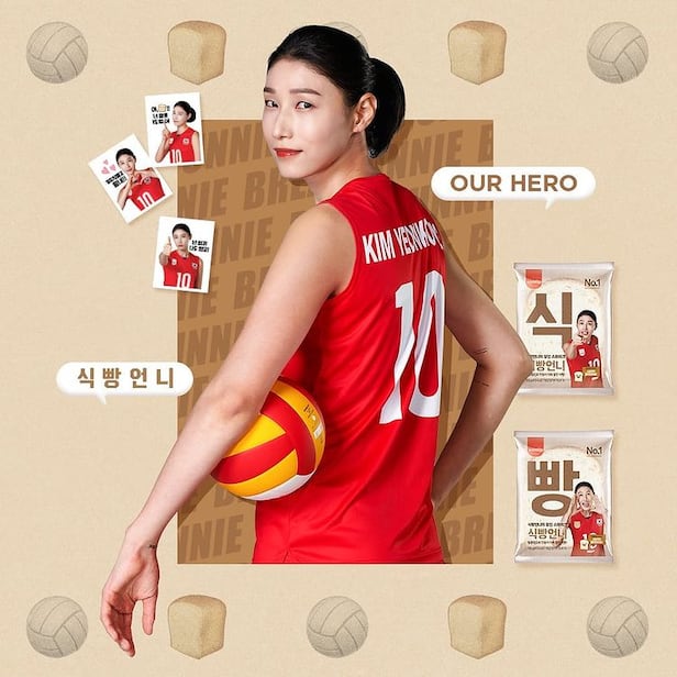 도쿄올림픽 이후 김연경에게 뜨거운 러브콜을 보내고 있는 광고계도 그의 ‘식빵언니’ 이미지를 활용하고 있다. 지난달 말 공개된 KT 갤럭시Z플립3 광고에는 김연경이 휴대전화로 사진을 찍고 식빵을 주문하는 모습이 담겼다. 제너시스BBQ 역시 “식빵언니에서 치킨언니로”라는 광고 문구를 사용했다.