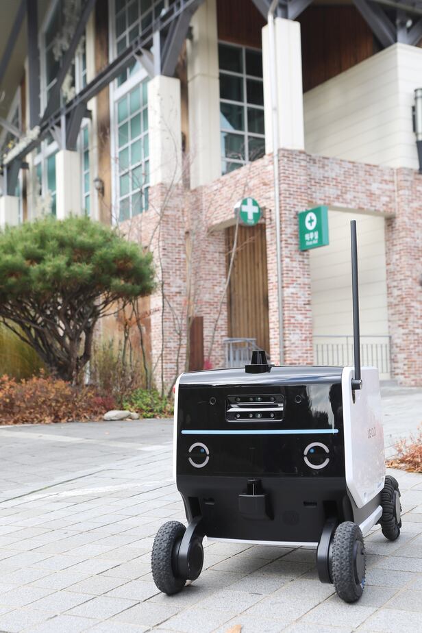 LG전자가 인공지능(AI)과 로봇을 활용해 호텔과 리조트를 효율적으로 관리할 수 있는 ‘AI 시설관리 솔루션’을 1일부터 경기도 광주시 곤지암리조트에 도입했다. 사진은 곤지암리조트에서 자율주행 기능이 탑재된 AI 로봇이 시설물을 점검하고 있는 모습.