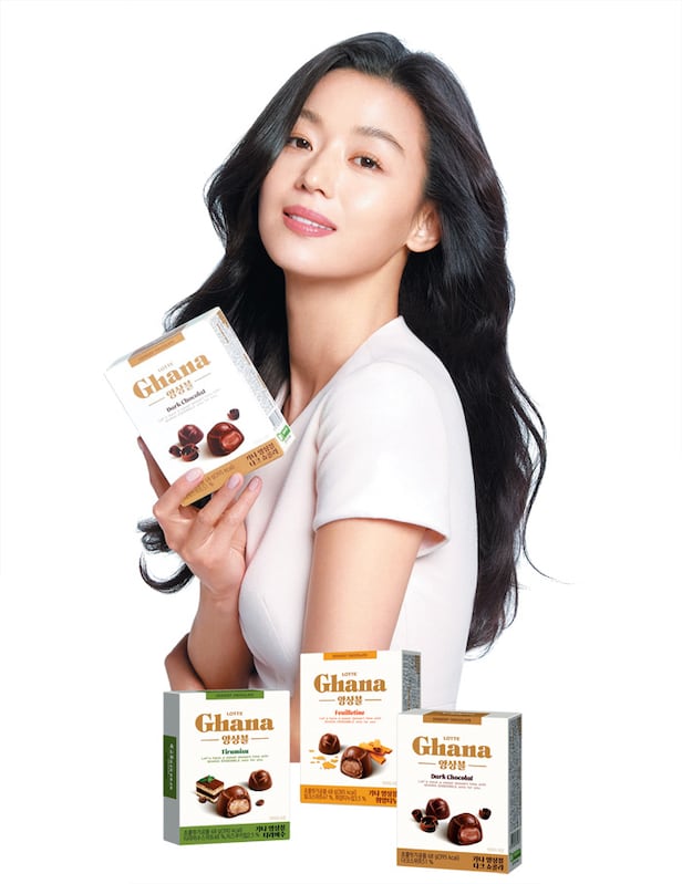 롯데제과는 작년 말 가나초콜릿 광고 모델로 배우 전지현을 발탁했다. 전지현은 오랫동안 모든 세대에서 사랑을 받아온 톱스타로, ‘국민 CF 여왕’으로도 불린다. 롯데제과는 전지현이 초콜릿의 주요 고객인 20·30대 여성에게 호감도가 높고, 특유의 세련되고 고급스러운 이미지가 가나초콜릿과 잘 어울린다고 판단해 모델로 선정했다.