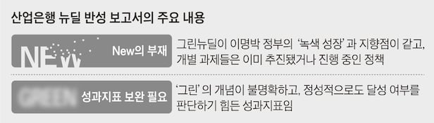 이 보고서에서 이선화 선임연구원은 “(한국판 뉴딜 중) 그린뉴딜 계획은 2009년 시행된 ‘녹색성장’ 정책과 유사한 부분이 많고 기존 정책들과 중복되는 부분이 있어 참신하지 않다는 지적이 존재한다”고 밝혔다.