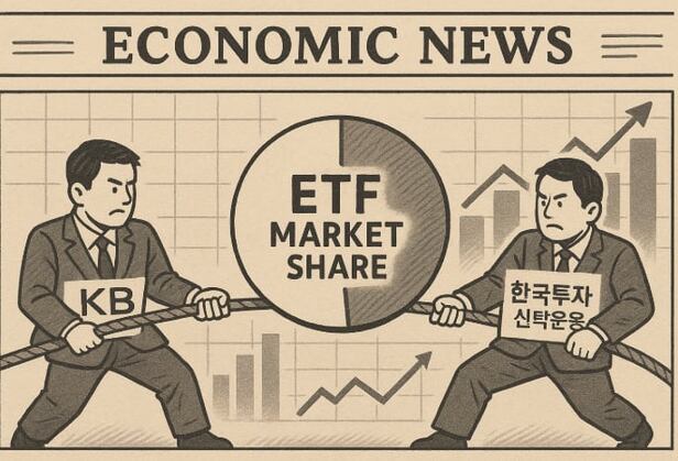 국내 상장지수펀드(ETF) 시장 3위 자리를 두고 KB자산운용(KB운용)과 한국투자신탁운용(한투운용)이 치열한 경쟁을 이어가고 있다. 최근 일주일 새 3번이나 자리가 뒤바뀌었다. 순환매 장세 속에서 두 자산운용사의 주력 ETF 차이로 인해 희비가 오가고 있다.