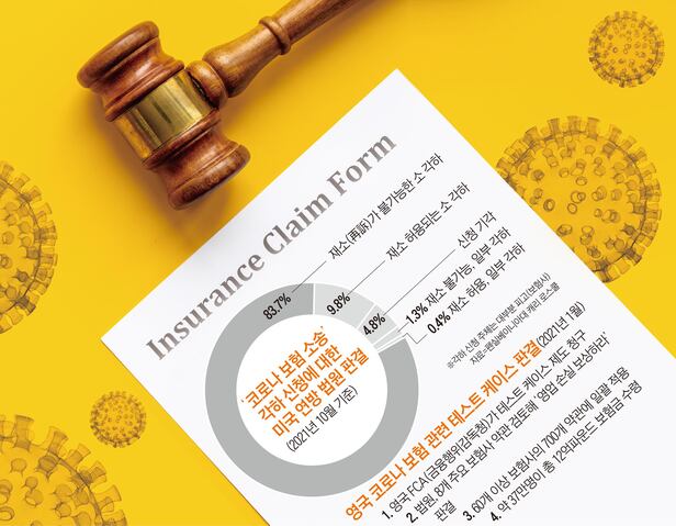 대서양 건너 영국에서는 지금까지 주로 보험 계약자들이 웃었다. 영국에는 참고할 만한 선례가 없는 금융 관련 분쟁을 효율적으로 다루기 위한 ‘테스트 케이스(시범 소송)’란 제도가 있다. 이 제도를 통해 영국 FCA(금융행위감독청)가 코로나로 인한 사업 중단을 보험사가 보상해야 하는지 법원의 판단을 구했는데, 올해 초 법원은 주요 보험사 8곳의 약관 내용을 분석한 뒤 ‘영업 중단 손실을 보상하라’고 판결했다. 이 판결이 60개 보험사에 적용돼 계약자 37만명이 총 12억파운드(약 1조9000억원)를 지급받았다.