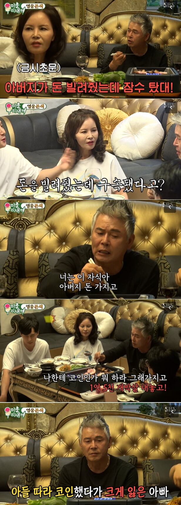 그러면서 이동준은 아들 이일민을 향해 “넌 내 돈 가지고 코인인가 한다고 해서 1억 5000만원 가져가서 개박살 냈지 않냐. 코인만 보면 짜증이 난다”라고 또 다른 폭로를 해 웃음을 안겼다.