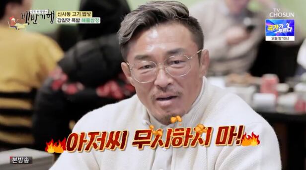 종합격투기 선수 추성훈이 최근 출연작 ‘피지컬:100′에 대해 언급했다. 10일 방송된 TV조선 예능프로그램 ‘식객 허영만의 백반기행’(이하 ‘백반기행’)에는 서울 신사동으로 고기 밥상 기행을 떠난 추성훈과 허영만의 모습이 담겼다. 이날 허영만은 추성훈을 만나러 체육관으로 향하며 “지금까지 게스트를 많이 모셨는데 오늘은 상당히 긴장되고 약간 두렵기도 하다”고 전했다.
