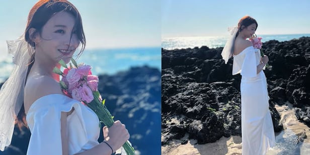 배우 유인영이 깜짝 웨딩 촬영 모습을 공개했다.