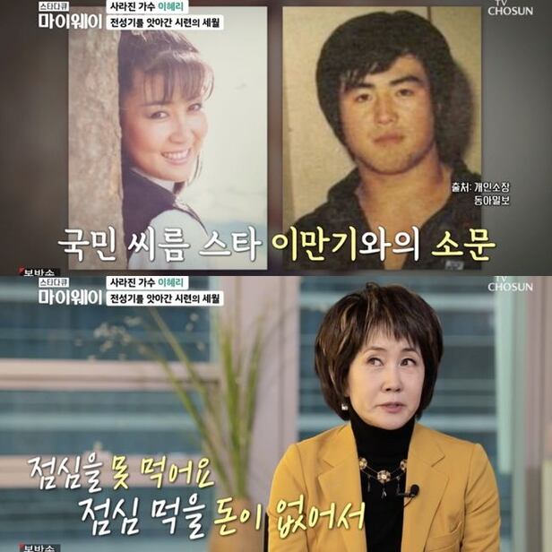 결국 가요계를 떠나게 된 이혜리는 “개인 사정으로 인해서 노래를 못하게 됐다. 씨름 스타 이만기와의 소문이 돌기 시작했다. 그 일로 노래를 못했다. 쇼프로그램 나오는 거 일부러 안 봤다. 울기도 많이 울었다”라고 회상했다.