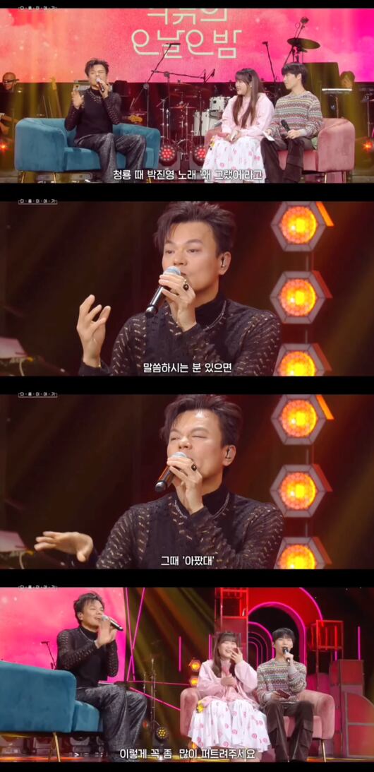 박진영은 지난 5일 KBS 2TV ‘더 시즌즈-악뮤의 오날오밤’(이하 ‘오날오밤’) 예고 영상을 공개하며 “청룡 설욕 무대. 목관리도 실력이라 목관리 다시 해서 나왔습니다”라며 “청룡 설욕 무대 안 본 사람 없게 해주세요”라고 했다.