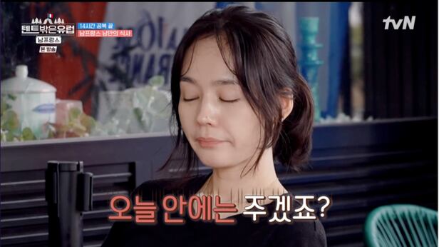 [OSEN=박근희 기자] '텐트 밖은 유럽 - 남프랑스 편’ 한가인이 레스토랑의 느린 서빙에 답답해했다.