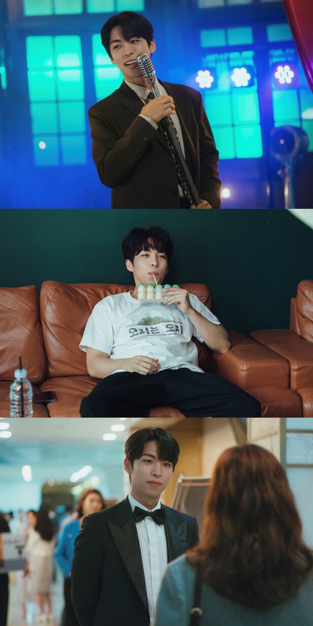 마지막 스틸컷에선 정헌이 기백, 우주와 어떻게 얽히게 될지 예측해 볼 수 있는 상황이 담겼다. 턱시도를 차려 입고 우주 앞에선 정헌의 눈빛이 애틋하다. 우주 곁으로 가는 게 방송의 목표인 그에게 마침내 찾아온 기회일 수 있을 터. 게다가 정헌은 사실 우주의 옛 연인이기도 하지만, 기백의 동창이기도 하다. 정헌이 최고의 주가를 올리고 있는 예능계에서 세 사람이 보여줄 예능적 케미와 묘한 관계성은 이들의 이야기가 더욱 궁금해지는 이유다.