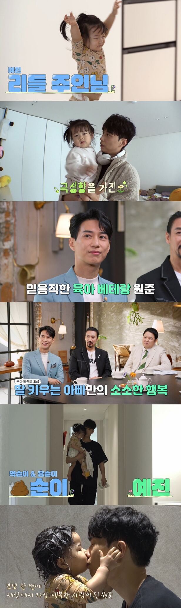 김원준은 예진이를 데리고 영유아검진을 받으러 외출했다. 병원에서는 "아이의 체중이 백분위 99%"라고 설명했고, 이에 김원준은 살짝 걱정했지만 "만 2세까지는 소아 비만이란 게 없다"는 의사의 설명에 미소를 되찾았다. 집으로 돌아온 김원준은 '1일 4응아'를 실천한 예진이에게 새삼 놀라면서도 정성스레 딸을 목욕시켜다. 이때 예진이가 아빠의 볼을 잡고 뽀뽀를 했다. 하루종일 뽀뽀를 거부했던 예진이가 갑작스레 입을 맞추자, 김원준은 고된 육아를 보상받는 듯 뭉클해했다.