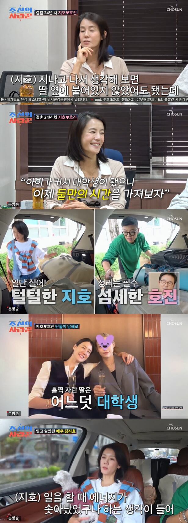 지난 2001년 김호진과 결혼 후 2004년 딸 김효우를 얻은 김지호는 "딸이 어렸을 땐 매일 데리고 잤다. 너무 행복했다. 딸과 함께 있으면 잠도 잘 오고 너무 행복했다. 그런데 지나고 나서 생각해보면 딸 옆에 붙어있지 않았어도 되는데 너무 아이에게만 나의 모든 걸 맞춰 살지 않았나 싶다. 내 시간이나 남편과 둘의 시간을 충분히 가졌어도 되는데 꼭 내가 있지 않으면 큰일이 날 것처럼 생각했다"고 엄마로서의 삶을 곱씹었다.