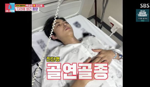 진단명은 '골연골종'이었던 것. 병원에 입원했던 당시 모습도 공개했다. 백성현은 "뼈 어디든 생길 수 있는 종양. 특히 관절에 생기면 개복 수술해야했다"며 "아직 젊기에 예후가 안 좋다고 해 대신 고주파로 종양 제거수술했다"꼬 했다. 그렇게 첫 통증후 약 3개월만에 수술을 받은 것. 여러병원을 다니며 오랜시간을 허비하느라 몸이 완전히 틀어졌다는 백성현은 "이후 종합병원갔다 종양은 완전히 제거했지만 늦은 치료로 상하체가 완전히 뒤틀러버려, 재활하는데 시간이 오래걸렸다"고 했다.