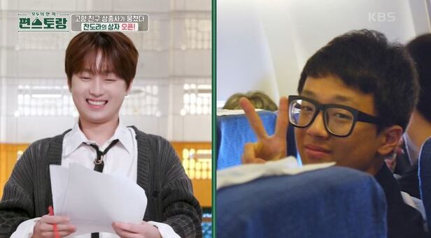 이찬원이 "잠깐만"이라며 다급히 외쳤지만 그의 과거 모습이 공개됐다. 안경에 상장을 든 고등학생 시절 이찬원의 사진이다.