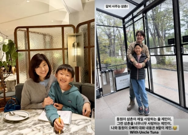 [OSEN=선미경 기자] 아나운서 출신 강수정이 아들과 친오빠의 다정한 시간을 공개했다.