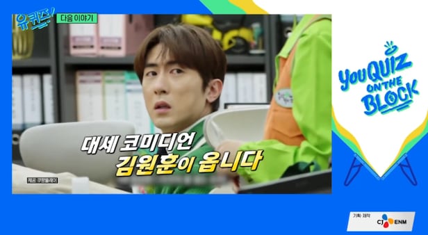 24일 방송된 tvN ‘유 퀴즈 온 더 블럭’ 말미에는 다음 주 예고편이 공개됐다. 예고 영상에는 유튜브 채널 '숏박스'와 쿠팡플레이 '직장인들'의 히어로 김원훈이 등장해 시청자들의 눈길을 사로잡았다.