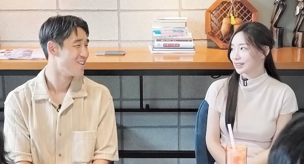 곽민선은 “처음에는 ‘일’로 만났다. 제가 인터뷰했던 선수 중 한 명이었다. 조금 무서웠다”고 ‘예비 신랑’의 첫인상을 밝혔다. 송민규는 “나만 진심이었네…”라며 웃음을 자아낸다. 이에 곽민선은 “그때는 (송민규가) 금발이었다”고 첫인상이 무서웠던 이유를 전했다. 자료 화면에는 밝은 금발의 스포츠 커트 머리를 한 송민규가 인터뷰 내내 곽민선을 바라보면서 웃는 모습이 포착됐다.
