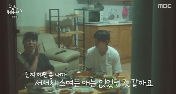 밤이 깊어감에 따라 세 남자의 대화는 점점 깊어졌다. 이이경은 무심하고 시크해보이지만 알고 보면 따뜻하고 잘 챙겨주는 주우재에 대해 이야기하며 “내 옷의 90%가 형이 준 옷이다”라고 고마워했다. 주우재는 처음엔 이이경의 저돌적인 텐션과 맞지 않는다고 생각했지만 “시간이 지날수록 얘만큼 서서히 스며든 애가 없었던 것 같다. 어느 순간 이경이를 좋아하게 됐구나. 촬영장에서 내가 이경이에게 기대고 있더라”라고 고백했다.