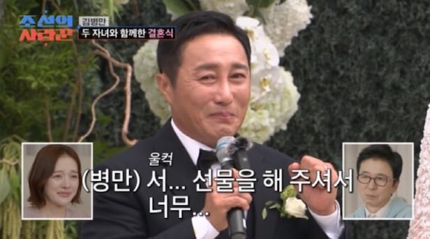 이어진 덕담 시간에는 배우 심형탁을 비롯해 장인어른과 지인들이 진심 어린 메시지를 전했다. 김병만은 "이런 선물을 주셔서 정말 감사하다"며 울먹였고 스튜디오 MC들 역시 모두 눈시울을 붉혔다. 마지막으로 김병만의 아내는 "나도 귀한 딸인데 가족이 되어주셔서 감사하다"며 부모님께 인사를 전해 감동을 자아냈다.