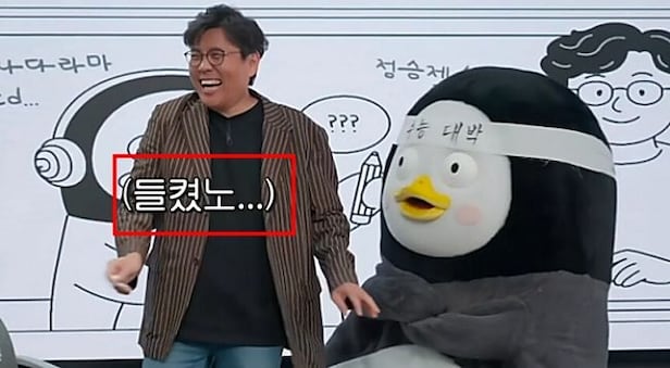 이 가운데 로그와 지수를 설명하는 과정에서 '들켰노'라는 자막이 등장해 논란을 빚고 있다. 정승제가 펭수의 수준을 고려해 판서 도중 문제를 수정하자, 펭수가 "잠깐만, 왜 바꿨어요?"라고 따진 상황. 정승제와 제작진이 멋쩍은 듯 웃자, 펭수가 "나를 무시했거든?"이라고 따지는 장면 뒤 정승제의 아래에 "(들켰노...)"라는 자막이 등장한 것이다.