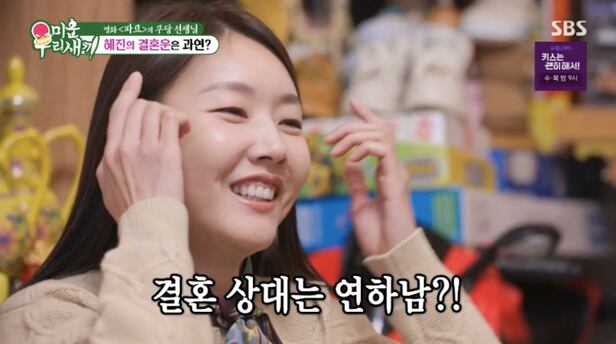 다행히 내후년까지 성혼이 있다는 한혜진은 결혼할 상대가 있다고. 고부 무속인은 “들어온다 이제”, “100%”라고 확신했고, 한혜진은 소리를 지르며 “올해 들은 말 중에 가장 행복한 말이다”라고 환호했다.