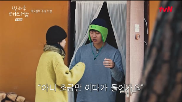 빨리 비켜달라는 김태리의 요구에 최현욱은 더욱 버벅거리며 “지금 급하.. 급하세요?”라고 묻더니, 급기야 “아니, 조금만 이따가 들어가요”라고 김태리의 입장을 가로막아 폭소를 자아냈다.