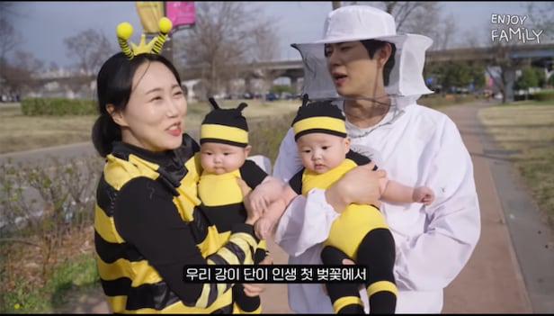 5일 오후 유튜브 채널 ‘엔조이커플’에는 ‘쏠수이써!!!!! 꿀벌가족의 인생 첫 벚꽃놀이!’라는 제목의 영상이 게재됐다.