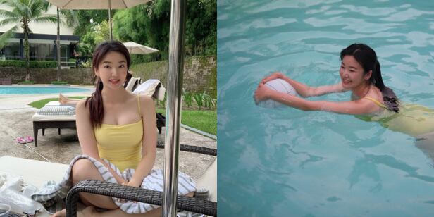 옥순은 4일 자신의 자신의 인스타그램 스토리에 "Day 3 이모저모 - 음주수영. 배에 힘줘도 힘이 안들어가는 na eee…"라는 멘트와 함께 사진과 영상을 공개했다.