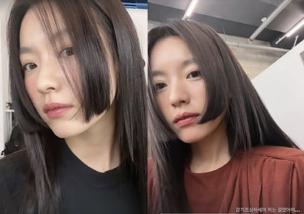 한효주는 4일 "감기 조심하세요. 저는 걸렸어요"라는 멘트와 함께 사진 2장을 공개했다.