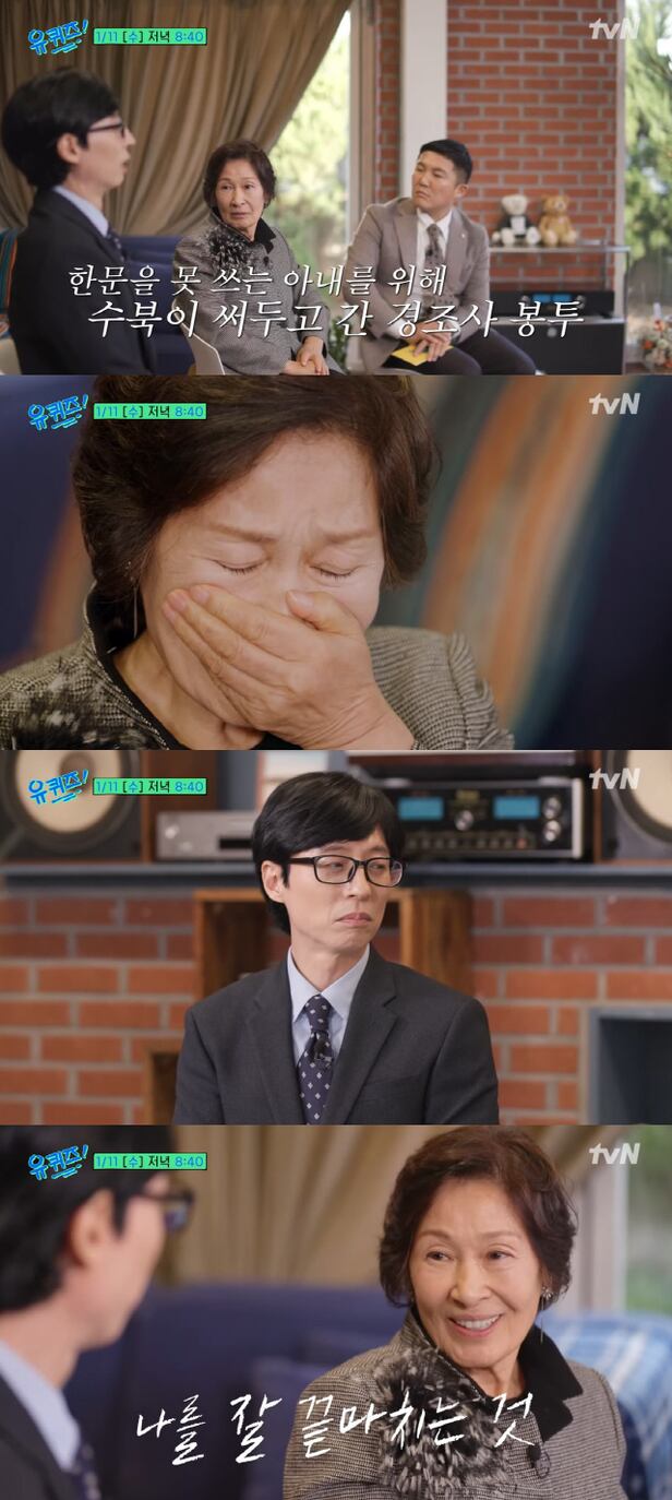 이날 김혜자는 남편 이야기가 나오자 "남편 얘기하면 눈물난다"며 얼굴을 감싸며 눈물을 흘렸다. 이어 "축의금이나 부의금을 한문으로 쓰면 멋있지 않나. 제가 한문을 잘 못써서 남편이 경조사 봉투를 이만큼 써주고 갔다. 잊지 못하겠다"고 말했다. 이에 유재석도 말을 잇지 못하고 울컥하는 모습을 보였다.
