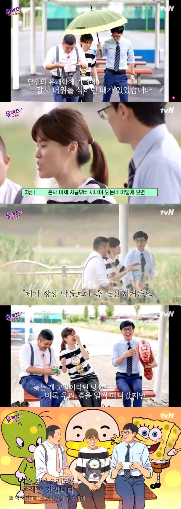 4일 방송된 tvN 예능프로그램 '유 퀴즈 온 더 블럭'(이하 '유퀴즈')에서는 방송 말미 박지선을 추모하는 영상을 게재했다.
