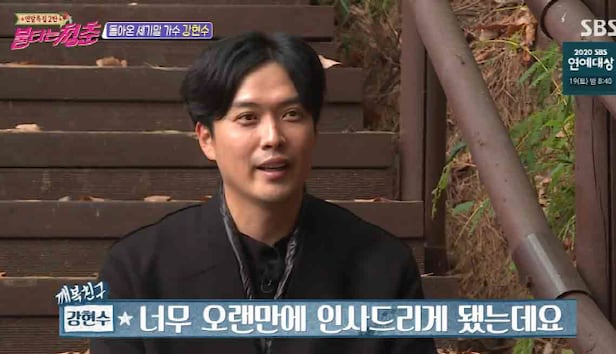 강현수는 "브이원이라는 가수로 활동했던 가수 겸 배우 강현수"라고 인사했다. 1999년 데뷔한 강현수는 당시 세기말 예능 블루칩으로 예능에서도 잘생긴 허당캐로 활발한 활동을 펼친 바 있다. 히트곡 '그런가봐요' '면도'로 많은 사랑을 받았던 가수이기도 하다.