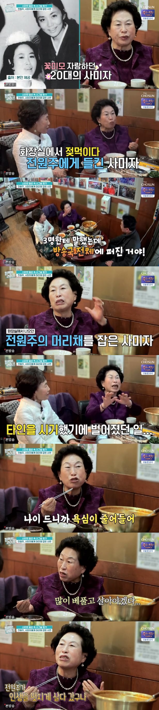 이날 전원주는 지인들과 식사를 하던 중 사미자에게 머리채를 잡힌 사연을 털어놨다.