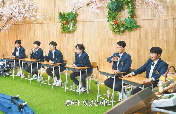 사진 속 여섯 멤버들은 교복을 입은 채 책상에 앉아 문제 풀이에 집중하고 있는 모습. 특히 임영웅, 이찬원, 영탁, 김희재, 장민호, 황윤성은 바람을 맞으며 벌칙 수행을 예고한 듯한 사진을 통해 '뽕숭아학당' 시청자들의 궁금증을 유발했다.
