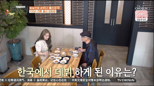 두 사람은 울산의 가장 오래된 노포를 찾았다. 3년만 있으면 100년이 되는 비빔밥집이라고. 비빔밥이 나오기 전 간단한 전채요리로 묵사발이 나왔다. 맛을 본 에일리는 “국수 같다”고 말했고 허영만은 “덤덤한 맛이다. 다 먹고 난 뒤에 사람을 편안하게 해주는 맛이다”라고 말했다.