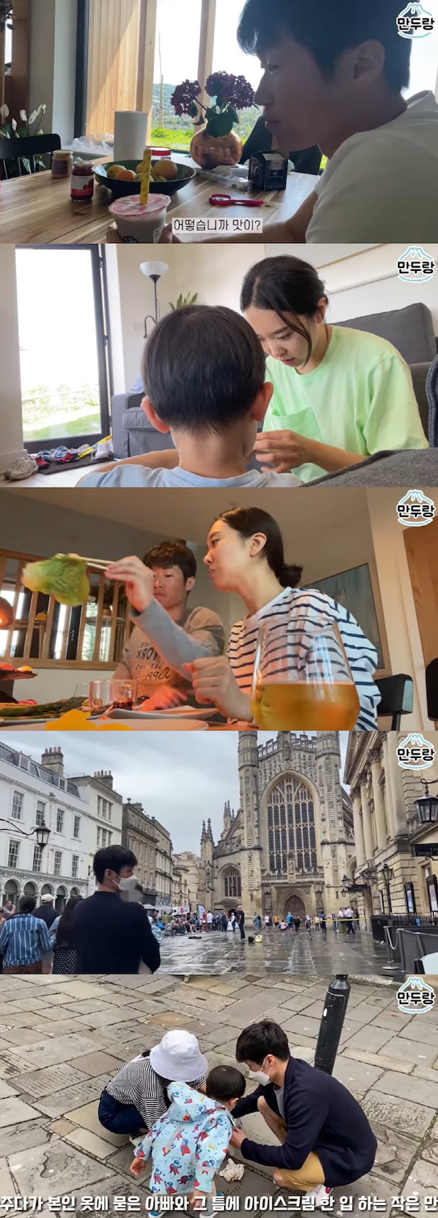 영국에서 지내는 김민지 박지성 가족은 친구 가족들과 함께 코티지(오두막)을 빌려 바스로 여행을 떠났다. 박지성과 김민지는 아이들과 함께 하며 평화로운 시간을 보냈다. 저녁에는 고기와 술을 곁들여 먹으며 행복해했고 다음날은 아침부터 빵을 동네를 돌아봤다. 여행 중에도 육아는 계속 됐다. 박지성은 아이스크림을 먹다 온 몸에 묻힌 아들을 닦아주려다 자신의 몸에도 묻었고, 이를 닦는 중 아들은 아이스크림을 먹어 귀여움을 안겼다.