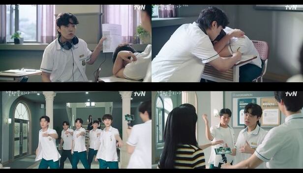 현재는 헤드폰을 쓰고 등장, 엎드려 있는 승유 앞에 앉아 팔로 웨이브를 추며 익살스럽게 첫 등장해 시청자들의 눈길을 사로잡았다. 이어 자고 있던 승유의 의사는 묻지 않고 윤수(임수정 분)가 만든 수학 동아리에 함께 지원하고 형도와 춤을 추며 영상을 찍는 등 인싸의 모습을 보여줬다. 이에 현재가 아성고 ‘세 얼간이’들의 우정을 어떻게 그려가게 될지 기대와 관심이 모아지고 있다.