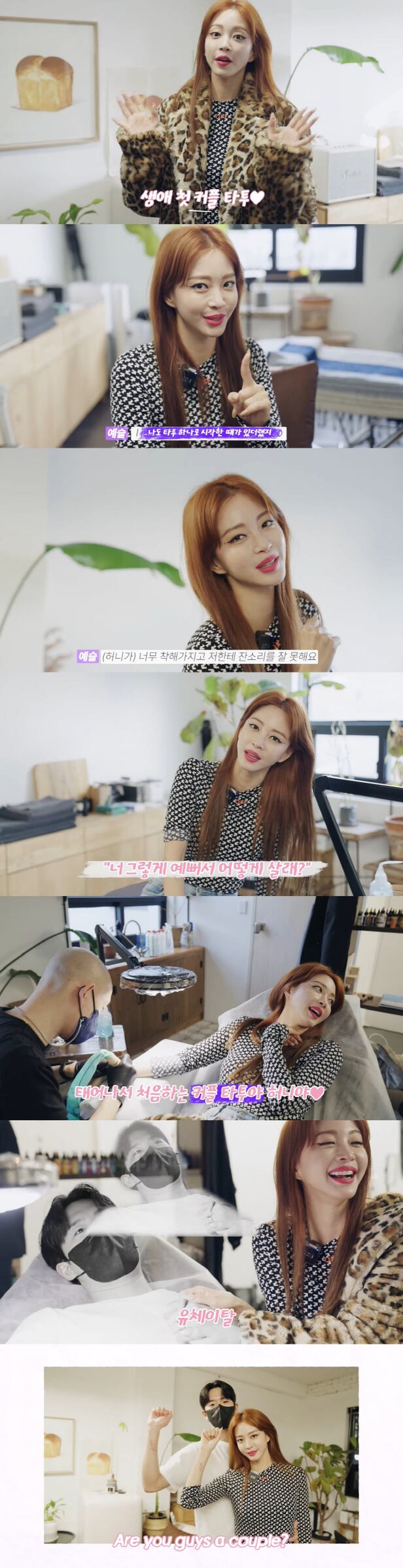 본격적인 타투 작업 전 한예슬은 "허니가 너무 착해서 나한테 잔소리를 잘 못 한다. 제일 잘 듣는 잔소리는 '너 그렇게 예뻐서 어떻게 살래?'다"라고 자랑했고, 남자친구는 긍정의 의미로 고개를 끄덕였다. 두 사람의 닭살 애정 행각에 스태프들의 야유가 터져 나와 웃음을 자아냈다.