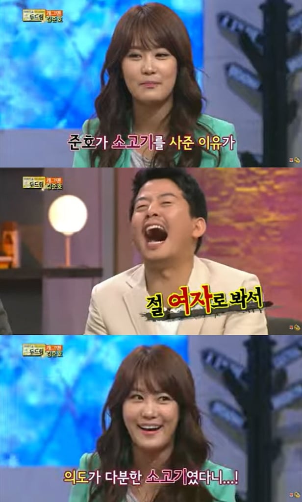 김준호는 써니가 "김지민 씨를 마음에 품었다는게 사실인가요?"라고 물어보자 "마음에 품었다기보다는 예전에 김원효, 양상국, 김지민이 저를 찾아왔었다. 개그 초년생 때니까 내가 밥을 사줬어요. 산채비빔밥 같은 거요"라며 "그런데 그날 지민이를 보자마자 5만3000원짜리 소고기를 사줬다. 그냥 사주고 싶더라"고 털어놨다.