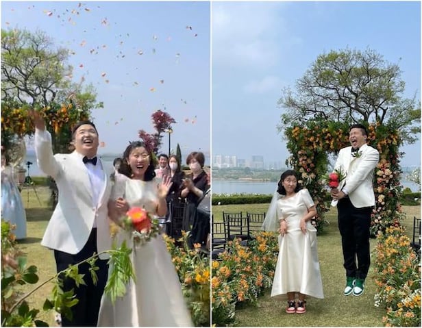 이와 함께 아름다운 야외 결혼식 사진을 공개하며 많은 축하를 받았다. 사진 속 두 사람은 특유의 캐릭터를 고스란히 살려 유쾌하면서도 사랑스러운 웨딩사진을 연출했다.